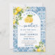 Lemon Citrus Mediterranean Baby Shower Blue Tiles Invitation