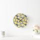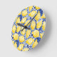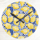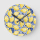 Lemon Citrus Mediterranean Blue White Tile Pattern Round Clock