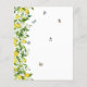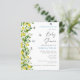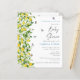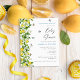 This is a modern citrus themed and budget friendly baby shower invitation. The design shows summery lemon tree branches, white flowers, green leaves and fluttering butterflies.