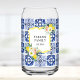 Start your morning with a touch of Italy! This lemon citrus Can Glass features a navy blue Mediterranean tile pattern, floral botanical accents, and summer vibes.