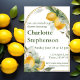 This lemon invitation is the best of the zest featuring a lemon greenery wreath on a rustic gold frame that is perfect for your next bridal shower, wedding shower, or baby shower! A combination of vintage and modern type green text gives this invite a unique and timeless look that will help set the stage for your next event!