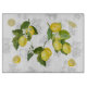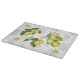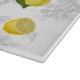 Hot pad cutting board with lemons and a background of light gray fruit drawings. Your choice of sizes.