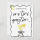 Elegant and Chic Lemon Drop Martini Maid of Honor Proposal Card - One TINI Question... Ask that special friend to be your maid of honor with this elegant martini themed bridesmaid proposal card. Featuring a watercolor illustration of a lemon drop martini with a sleek black coquette bow and a hand drawn, squiggle, quirky ribbon frame. A mixture of script typography and stylish block font, add a touch of whimsy elegance. Personalize this "will you be my bridesmaid" proposal card by adding your own custom message.