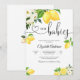 Celebrate the arrival of a little one with this elegant lemon floral baby shower invitation. Featuring bright yellow lemons, delicate white blossoms, and lush greenery, this design brings a fresh and cheerful touch to your special day. Perfect for summer gatherings, garden parties, or citrus-themed celebrations, this customizable card makes it easy to share event details with loved ones. A stylish mix of cursive and serif fonts adds sophistication, ensuring your invitation stands out beautifully.