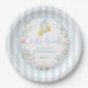 Lemon Floral Blue Bows Paper Plate