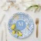 Lemon fruit monogram, blue tile paper plates