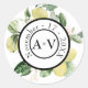Lemon Garden Floral Monogram White Wedding Classic Round Sticker