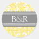 Custom monogram envelope seals for wedding, in elegant bright canary yellow, gray and white classic floral damask vintage pattern, the perfect addition to your save the date card or wedding invitation envelopes, available in many matching wedding products. Contact us for a color change request.