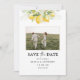 Lemon Green Citrus Save The Date with Photo Card. This stylish & elegant Bridal Shower Invitation features gorgeous hand-painted watercolor Lemon Green Citrus. Find matching items in the Lemon and Greenery Citrus Floral Collection.
