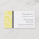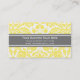 Business cards in elegant and vintage floral damask pattern in modern bright yellow, white and gray. Customizable with your contact details, stylish and contemporary. Contact us for a custom color.