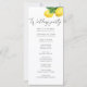 Celebrate your big day with this lemon wedding program accented by watercolor citrus and lush greenery, a design that brings fresh orchard charm to your stationery suite. Created in a two sided layout, this card combines elegance and function, making sure your guests feel welcomed and informed. The front side presents the complete order of service - from preludes and readings to vows, blessings, and recessional. The back side introduces your loved ones with a detailed wedding party list. Perfect for couples planning a summer garden wedding, rustic vineyard celebration, seaside ceremony, or Amalfi Coast inspired event. This citrus orchard program sets a warm, joyful tone.
