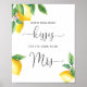 Watercolor lemonsl how many kisses bridal shower game sign.