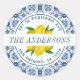 Lemon Italian Blue Tile Wedding Return Address Classic Round Sticker