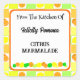 An editable baking or canning sticker with a colorful citrus fruit pattern of lemons, limes, oranges and citrus slices on squares of white, orange, teal and yellow, for marmalade, jellies or other recipes.