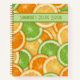A colorful, refreshing hardcover recipes book featuring slices of lemons, limes, and oranges. This fresh citrus recipe book is sure to brighten any kitchen or prep area. Great for keeping your recipes organized. Personalize with a name, or short phrase. On the back cover there is a section for Notes. You can personalize that text as well.