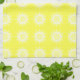 This white mandala sits on a lemon yellow background. The colors are happy and peaceful. Part of the Fenten Mandala Collection.