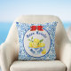 Lemon Mediterranean Tile Buon Natale Blue Red Bow Throw Pillow