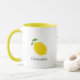 A mug with a yellow lemon illustration and customizable text: perfect gift for citrus lovers. It could be used at home, school or at work.