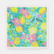 Party paper napkins are shown in the white luncheon size with an art print of a vibrant color lemon print.