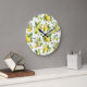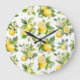 Lemon Pattern, Lemon Flowers, Leaves, Citrus Large Clock