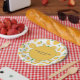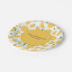 Paper Plates with a slice, half and full lemon pattern. A customizable text is available at the center on a yellow background. A fresh decoration for a birthday party, a wedding, a housewarming party, a retirement, a bachelorette party, etc.