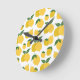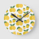 Lemon Pattern Retro Fruit Yellow On White Round Clock