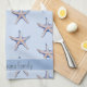 Beautiful custom name kitchen towel with a colorful watercolor Starfish pattern. Kitchen towel with personalized name in seamless delicate Starfish.