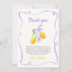 Lemon Purple Bow First Birthday Party Thank You Card