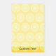 Round slice of lemon. Seamless pattern. Custom background color. Custom text.