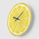 Our Lemon Time wall clock adds a splash of citrus fun to any kitchen or restaurant decor. It's the perfect way to keep track of time in style in your kitchen. With its vibrant yellow color and playful modern food art design, it's sure to be a hit with chefs and foodies alike. Upgrade your kitchen space with our lemon summer wall clock today!