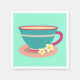 Cute teacup illustration with lemon tea. Tea lovers theme - tea makes everything better theme. Cute retro tea design on a teal background.