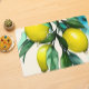 This colorful placemat features beautiful yellow watercolor lemons on a lemon tree branch with blue green leaves.