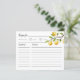 Whimsical rustic recipe card for your lemon theme bridal shower featuring watercolor illustration of a lemon tree branch with the citrus fruits. Ask your guests to fill out this recipe card and bring them to the bridal or wedding shower.