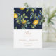 Our ''Lemon Tree Destination Wedding'' collection features watercolor lemon and lemon tree branch illustrations paired with easily customizable elegant fonts in which all your information is written. This collection has a few background color options; dark blue, black and white. Check out our store for more matching items perfect for a summer or destination wedding.