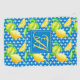 Add the bride and grooms first name initials (small letters) and their joint married surname initial (large letter) to create a stylish monogram gift for the newlywed couple. The pattern here is a stunning yellow and green lemon tree design against a beautiful ocean blue and white patterned background.