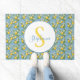 Lemon Watercolor Blue Tile Pattern Custom Doormat