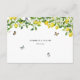 Summery, simple and elegant, this lemon themed wedding details enclosure card features brightly colored branches of lemon trees, white flowers with summer butterflies around.