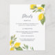 ♥ A wonderful way to provide some extra information to your guests. All details are HAND-DRAWN so you can be sure this design is one-of-a-kind. Lemons are amazing for any party. What better way to welcome the arrival of spring than with a fruity lemon celebration like a wedding? The beautiful color and foliage fit any party style and its bohemian and rustic look makes it fresh and perfect for a summer or spring wedding. Designed to match our Lemon Invitation Suite.