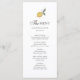 Designed with a delicate watercolor lemon illustration and sophisticated minimalist typography, this menu card presents your dining experience in a clean and timeless format. The vertical layout enhances readability while creating a polished, upscale look for your table setting.