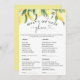 Immerse yourself in the charm of our Elegant Watercolor Lemon Bridal Shower Game, a delightful addition to any celebration where love and laughter take center stage. This design is a visual feast, featuring watercolor lemons that add a touch of vibrant elegance to the entire composition. Each element, lemons to the elegant typography, captures the essence of bridal shower joy and celebration. The soft watercolor strokes lend a whimsical touch, creating an ambiance of freshness and merriment. The lemony hues and charming details make this game a perfect complement to a bridal shower that is both sophisticated and filled with zest. Matching items available.