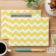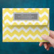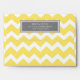 Elegant bright canary yellow, grey and white A7 greeting card envelope with stylish and retro chevron zigzags stripes pattern. Customize it with your return address. Available in matching cards and many other wedding products.