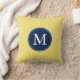 Lemon Yellow Blue Greek Key Pattern Monogram Throw Pillow