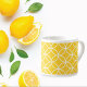 Sleek and stylish, this espresso cup brings a touch of modern elegance to your coffee routine. The lemon-yellow hue adds a pop of color to your kitchen, while the crisp white complements the design, creating a harmonious balance. The geometric pattern of diamonds and circles is not just visually striking but also adds a dynamic and trendy edge to the cup with a burst of sunshine in every sip.