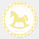 Lemon yellow and white gingham check personalized "from the nursery of" envelope seal with cute rocking horse silhouette.