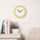 Lemon Yellow Quatrefoil Pattern Large Clock