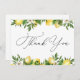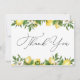 Thank You card features a border of watercolor lemons and greenery. Personalize with your information or click "Click to customize further" to edit font styles, size and colors. Can also be personalized on the back with your own typed message or delete this space to handwrite your own thank you.