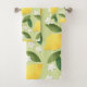 Lemons ans White Flowers on Green Background Bath Towel Set