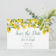 This botanical lemons blossom save the date card features an elegant script save the date above your details set in chic typography. Designed by Thisisnotme©