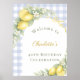 Welcome your guests in style with this charming lemon-themed birthday welcome poster 🍋 Featuring a dusty bliie gingham pattern and delicate florals, it’s perfect for a summer garden party or outdoor birthday celebration with italian, Mediterranean vibe!