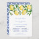 Lemons Blue White Tiles Wedding Rehearsal Dinner Invitation